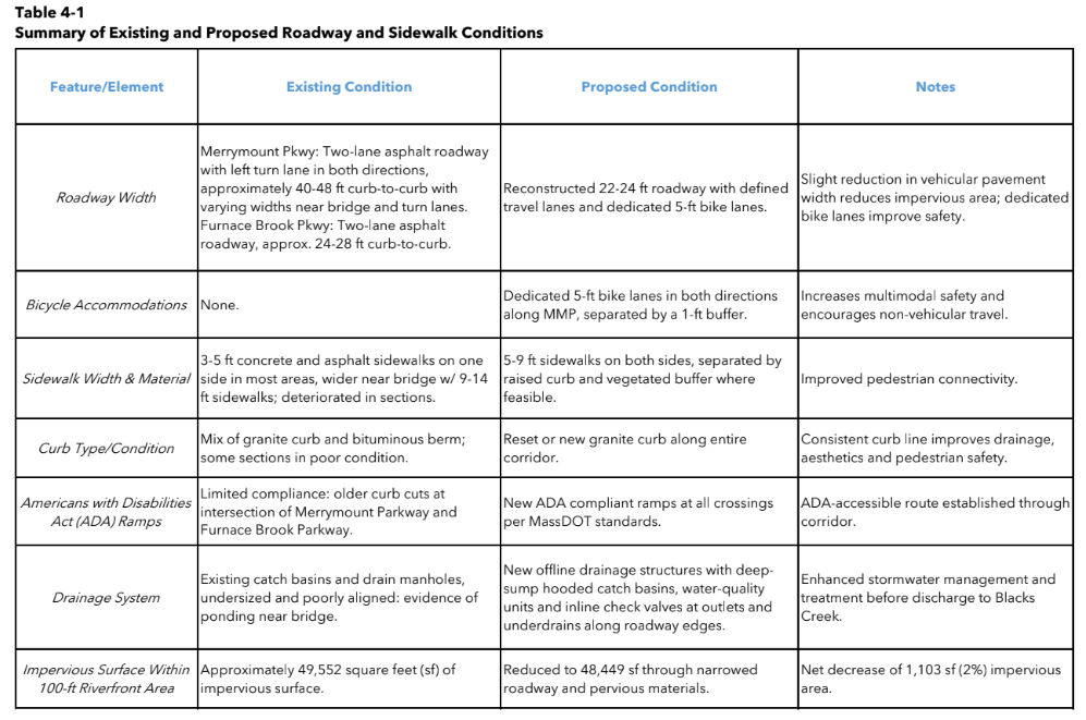 Replace the Merrymount Parkway bridge over Blacks Creek (near the intersection of Furnace Brook Parkway);